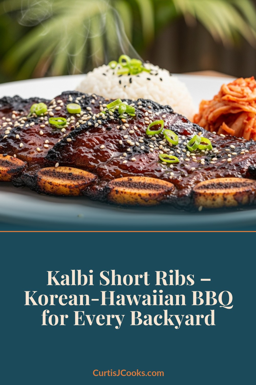 Kalbi — also spelled galbi — means “rib” in Korean, and it refers to thin-cut beef short ribs marinated in a sweet soy sauce mixture and grilled over high heat. The Hawaiian version tends to be sweeter than what you’d find in Seoul, with the marinade often including pineapple juice or Asian pear, sesame oil, garlic, and a generous amount of sugar. The ribs are cut flanken-style — across the bone, so each piece has three or four small cross-sections of bone with thin strips of meat between them. This thin cut means more surface area for the marinade and faster cooking on the grill, which means more caramelized, sticky, charred goodness per bite.