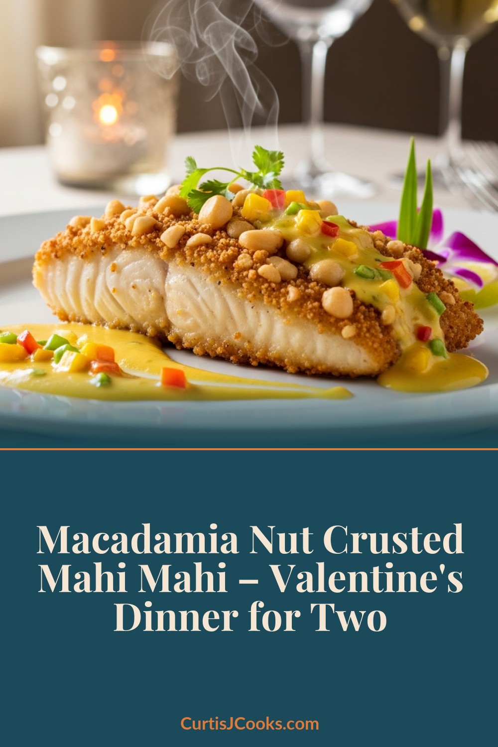 If you want to impress someone special this Valentine’s Day, this Macadamia Nut Crusted Mahi Mahi is your secret weapon. It’s the kind of dish you’d find at a high-end Hawaiian restaurant – golden, buttery macadamia crust giving way to perfectly flaky white fish, finished with a luscious tropical beurre blanc.