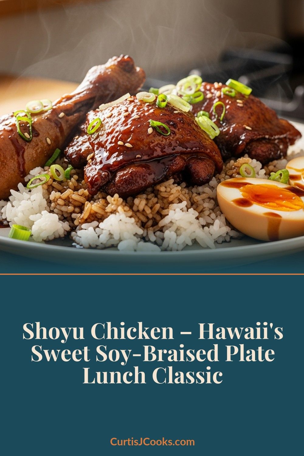 If you ask a local kid what their favorite plate lunch protein is, a lot of them will say shoyu chicken. Not teriyaki chicken (that’s different), not katsu (that’s also different), but shoyu chicken — bone-in chicken pieces braised low and slow in a sweet soy sauce mixture until the meat is falling off the bone and the sauce has reduced into this dark, glossy, impossibly savory liquid that soaks into every grain of rice on the plate.